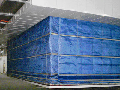 折疊提升防火卷簾門使用卷門機做動力源,以軸承,軸承座,軸承支架轉軸來提高傳動效率,利用提升帶提升防火卷簾門簾片,在提升的作用下,簾布折疊提升至洞口頂端,在受到煙感,溫感,火警的情況下簾布有頂端下降至地面,由折疊舒展到平面,封閉整個洞口。當洞口無限大時,將在一定距離增加一動力(卷門機)或傳動裝置,解決了洞口寬度過大和轉彎的地形卷軸和卷簾不能正常使用的問題,他同時具備無機特級防火卷簾門的所有功能和特點,運行可靠,啟閉運行平穩,速度快,噪音低等特點。