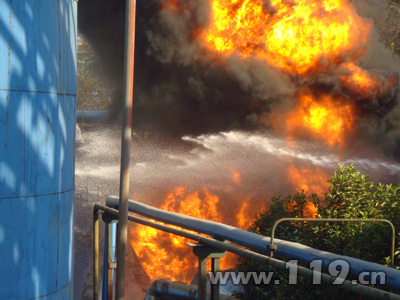 據初步調查,著火罐位于公司西部儲罐區,著火罐總儲量約99噸,此次事故未造成人員傷亡。目前,市安監部門已介入調查,事故原因和直接財產損失正在進一步調查之中。