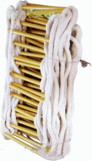 救生軟梯是一種用于營救和撤離火場被困人員的移動(dòng)式梯子,可收藏在包裝袋內(nèi),在樓房建筑物發(fā)生火災(zāi)或意外事故時(shí),樓梯通道被封閉的危急情況下,是進(jìn)行救生用的有效工具。